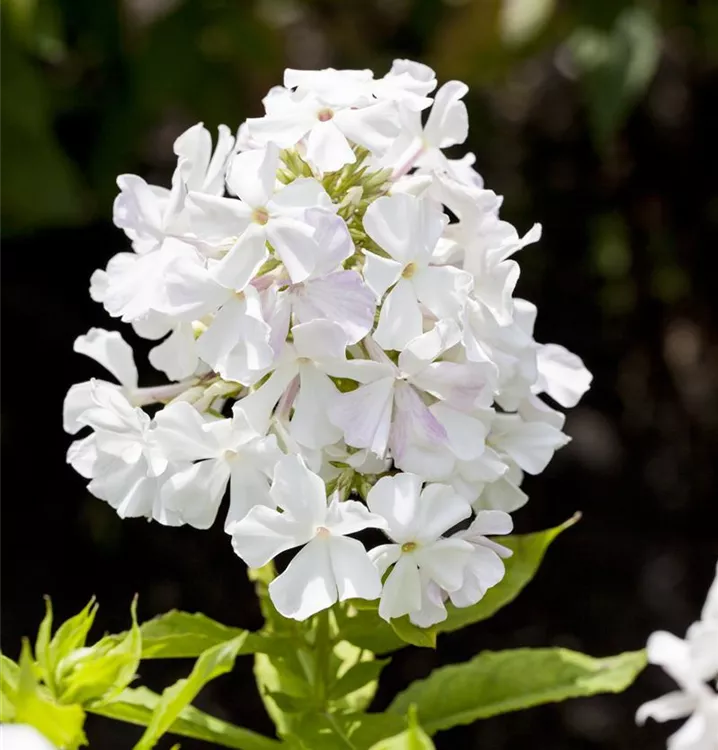 Phlox paniculata 'White Flame'® bildet in Dolden angeordnete, weiße Blüten ab Juli. Diese verströmen einen leichten Duft.