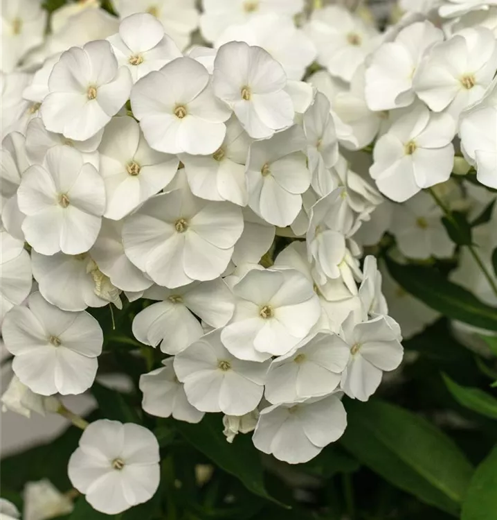 Phlox paniculata 'Rembrandt' bildet in Dolden angeordnete, weiße Blüten ab Juli. Diese verströmen einen schwachen Duft.