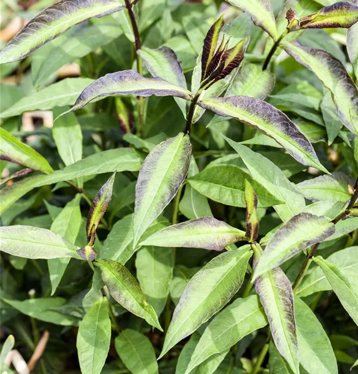 Die sommergrünen Blätter der Hohe Garten-Flammenblume 'Starfire' sind mittelgrün, lanzettlich.