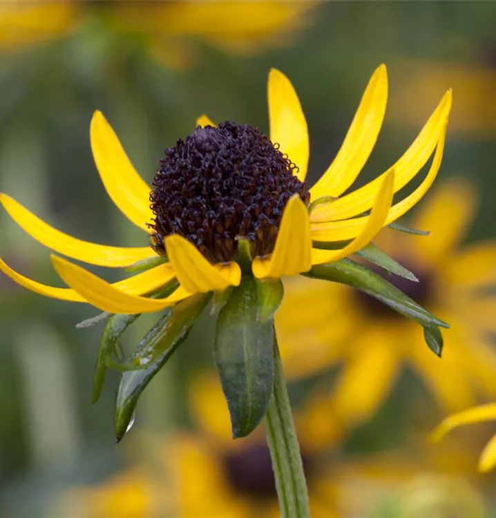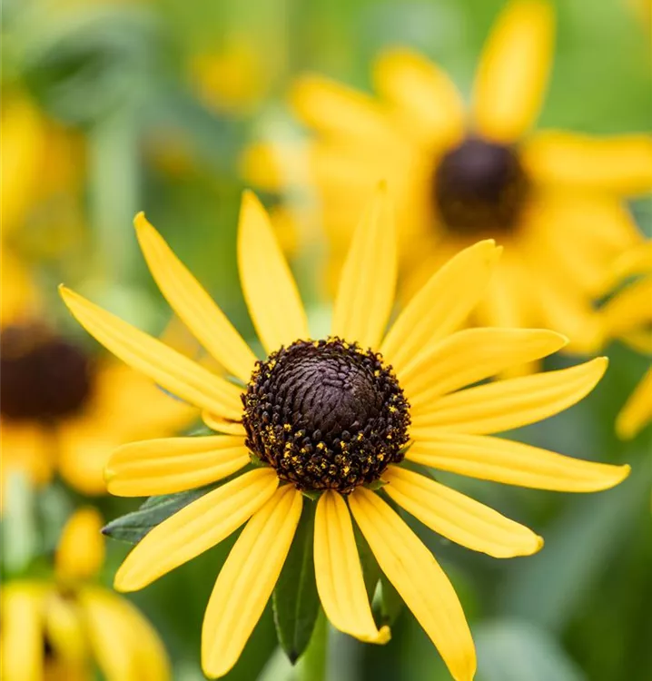Rudbeckia fulgida var. sullivantii 'Little Goldstar' bildet gelbe Blüten ab Juli.