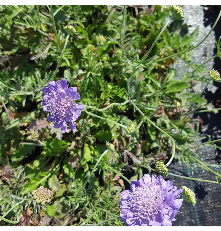Die Große Garten-Skabiose 'Perfecta' (Scabiosa caucasica) ist eine aufrechte Staude, die von Juli bis September blaue, schalenförmige Blüten bildet. An einem sonnigen Standort mit durchlässigem Boden erreicht sie gewöhnlich eine Höhe von ca. 70 cm und wird ca. 35 cm breit. Die Große Garten-Skabiose 'Perfecta' ist gut frostverträglich.
