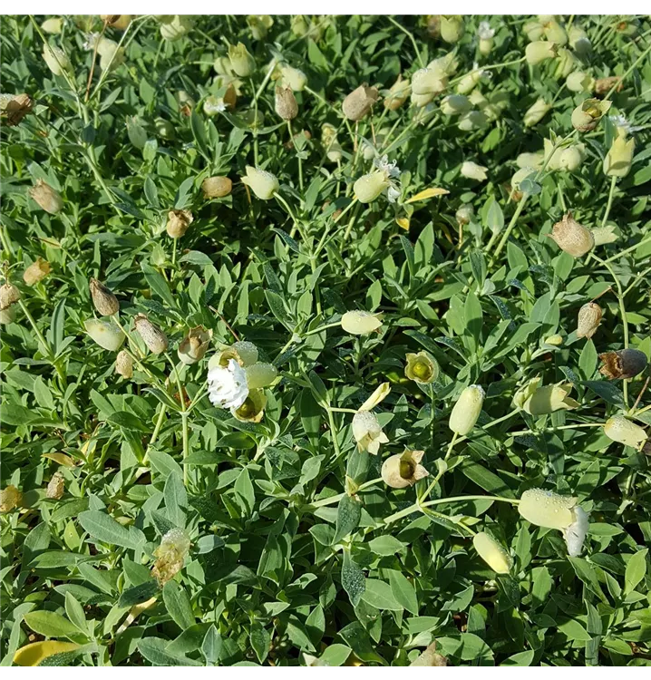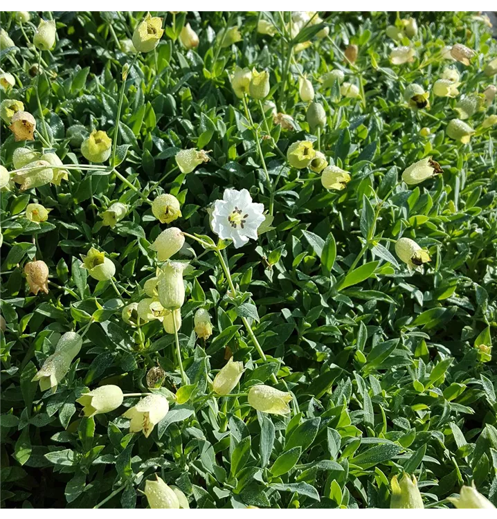 Das Leimkraut 'Weißkehlchen' (Silene maritima) ist eine ausläuferbildende wintergrüne Staude, die von Juni bis August weiße, radförmige Blüten bildet. An einem sonnigen Standort mit durchlässigem Boden erreicht es gewöhnlich eine Höhe von ca. 20 cm und wird ca. 30 cm breit. Das Leimkraut 'Weißkehlchen' ist gut frostverträglich.
