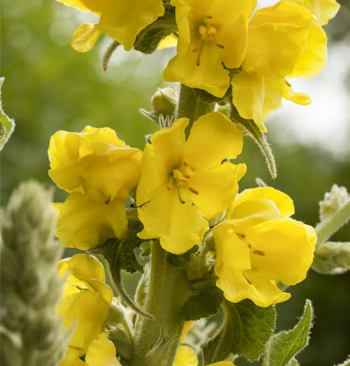 Verbascum bombyciferum bildet rachenförmige, gelbe Blüten ab Juli.