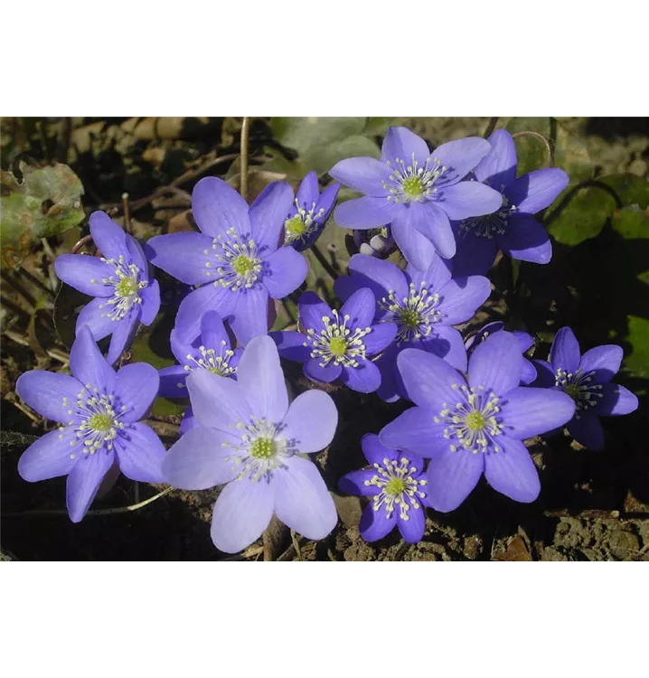 Hepatica nobilis bildet radförmige, blaue Blüten ab März.