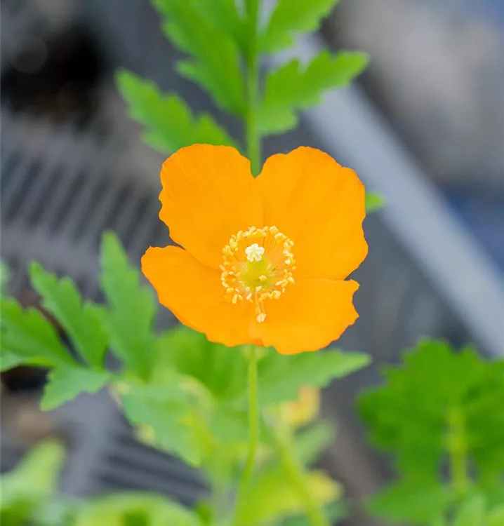Meconopsis cambrica 'Aurantiaca' bildet schalenförmige, orangefarbene Blüten ab Juni.