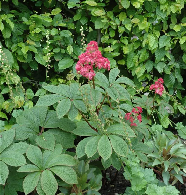 Rodgersia pinnata wächst ausladend, rhizombildend und erreicht gewöhnlich eine Höhe von 40 - 80 cm und wird bis zu 50 - 70 cm breit.