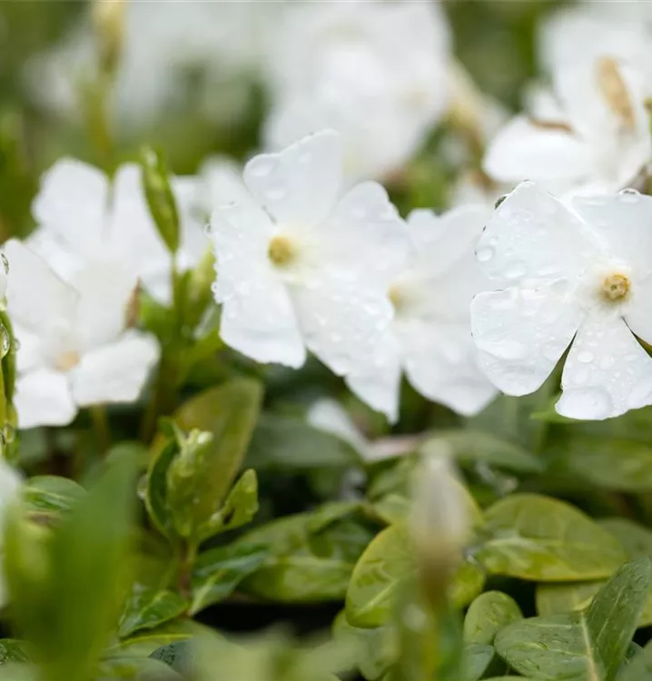 Das Großblättrige Immergrün 'Alba' weist eine gute Frosthärte auf.