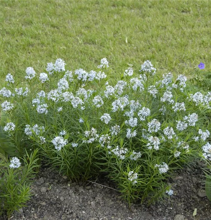 Dolden aus sternförmigen, hellblauen Blüten von Juni bis Juli