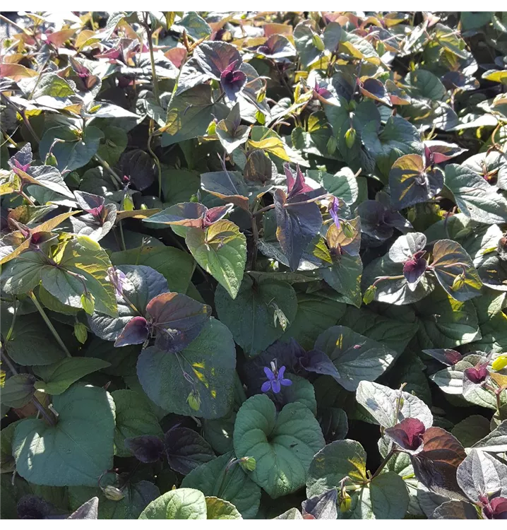 Ein außergewöhnliches Veilchen, dessen Blätter einen dunklen Purpurton haben. Diese Blattfärbung prägt sich besonders an voll sonnigen Standorten aus. Durch seine genügsamen Standortansprüche kann dieses Veilchen auch an Standorten verwendet werden, an denen sonst keine Veilchen mehr wachsen.