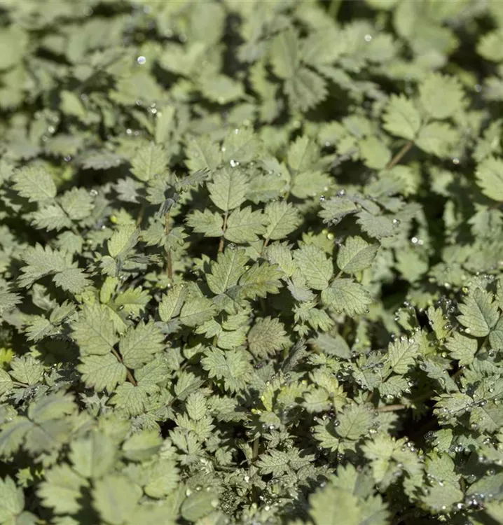 Das Blaugraue Stachelnüsschen bildet ruhige, graugrüne Blattteppiche. Besonders schön wirkt es, wenn es Steine umwachsen kann. Aufgrund des dichten Wuchses haben Unkräuter kaum eine Chance.