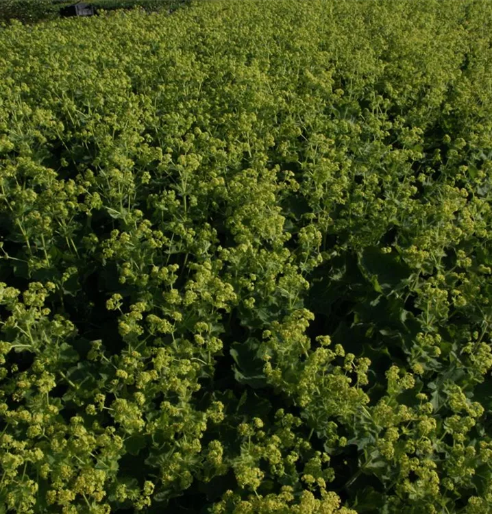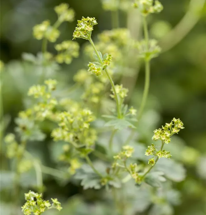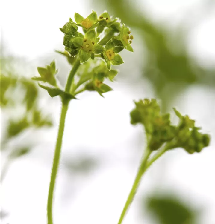 Alchemilla erythropoda bildet in Doldentrauben angeordnete, gelb-grüne Blüten von Juni bis August.