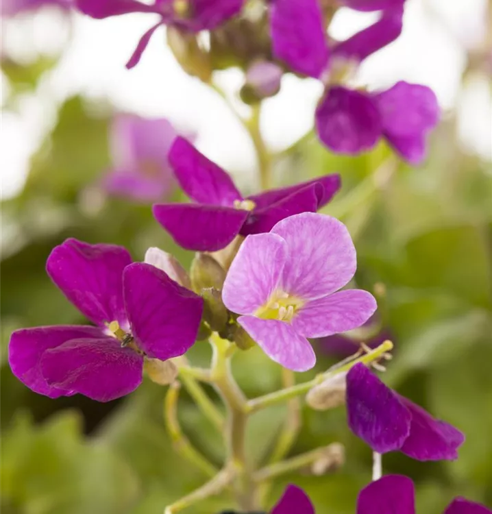 Die Garten-Gänsekresse 'Pinki' (Arabis caucasica) ist eine kompakte immergrüne Staude, die von April bis Mai dunkelrosafarbene, radförmige, in Trauben angeordnete Blüten bildet. An einem sonnigen bis halbschattigen Standort mit humosem, lockerem, nährstoffreichem Boden erreicht sie gewöhnlich eine Höhe von ca. 15 cm und wird ca. 30 cm breit. Die Garten-Gänsekresse 'Pinki' ist gut frostverträglich.