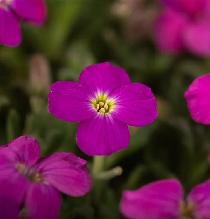 Aubrieta x cultorum 'Bressingham Red' bildet radförmige, rote Blüten ab April. Diese verströmen einen schwachen Duft.