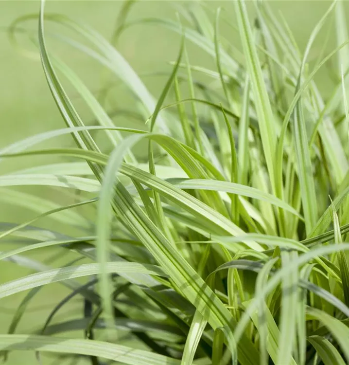 Hoher Blattschmuckwert. Die wintergrünen Blätter der Polsterartige Garten-Segge sind dunkelgrün.