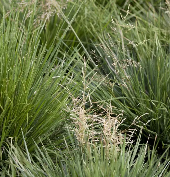 Die Garten-Schmiele 'Tauträger' (Deschampsia cespitosa) ist mit ihrer mittelgrünen Blattfärbung ein dekoratives Gestaltungselement im Garten, welches sich an einem halbschattigen bis schattigen Standort mit einem möglichst durchlässigen, humosen Boden am wohlsten fühlt. Die grünen Blütenwedel schmücken die aufrecht und horstbildend wachsende Pflanze ab Sommer. Bei günstigen Bedingungen erreicht dieses winterharte Gras eine Höhe von ca. 40 cm und wird bis zu 40 cm breit.