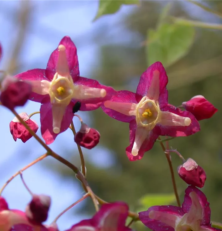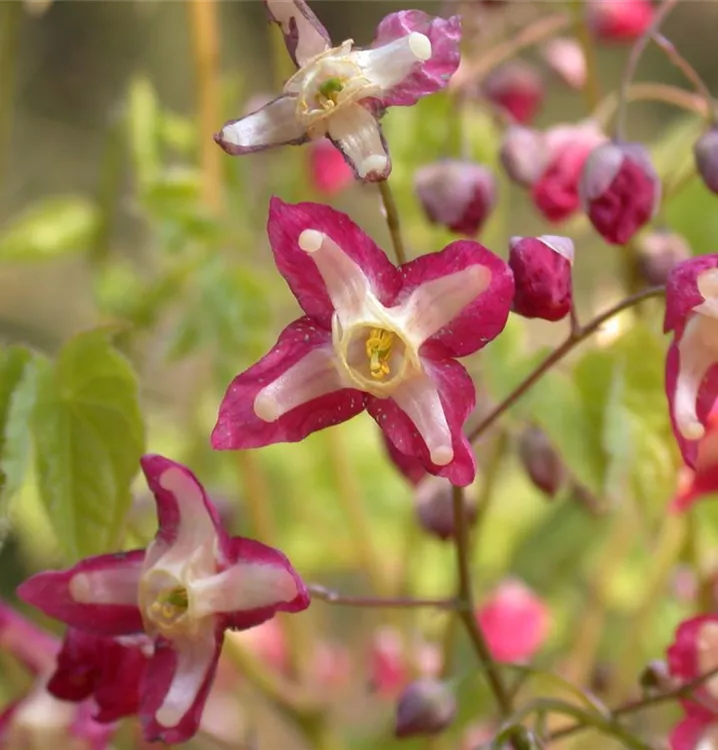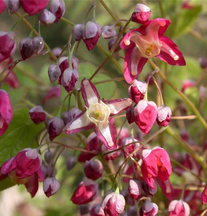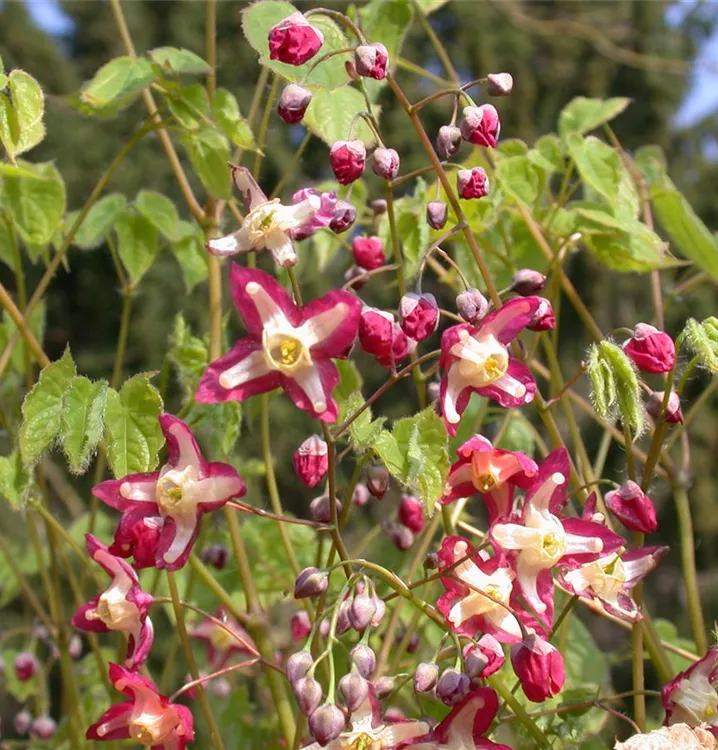 Die Alpen-Elfenblume (Epimedium alpinum) ist eine breite, ausläuferbildende Staude, die von April bis Mai gelb-rote, sternförmige Blüten bildet. An einem halbschattigen bis schattigen Standort mit durchlässigem Boden erreicht sie gewöhnlich eine Höhe von ca. 40 cm und wird ca. 40 cm breit. Die Alpen-Elfenblume ist gut frostverträglich.