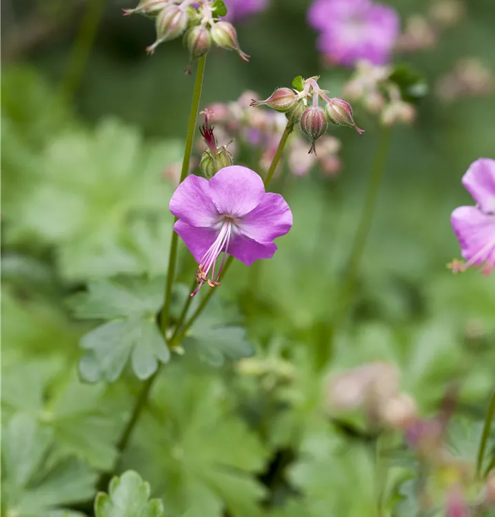 Geranium x cantabrigiense 'Berggarten' bildet rosafarbene Blüten ab Juni.