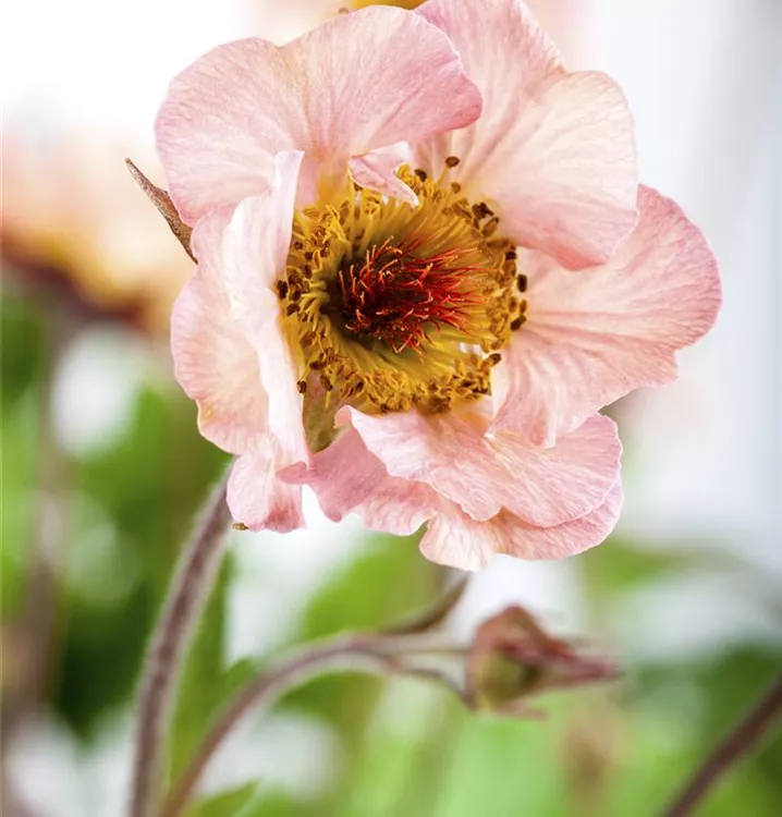 Geum rivale 'Mai Tai'® bildet schalenförmige, gelbe, orangefarbene Blüten ab April.