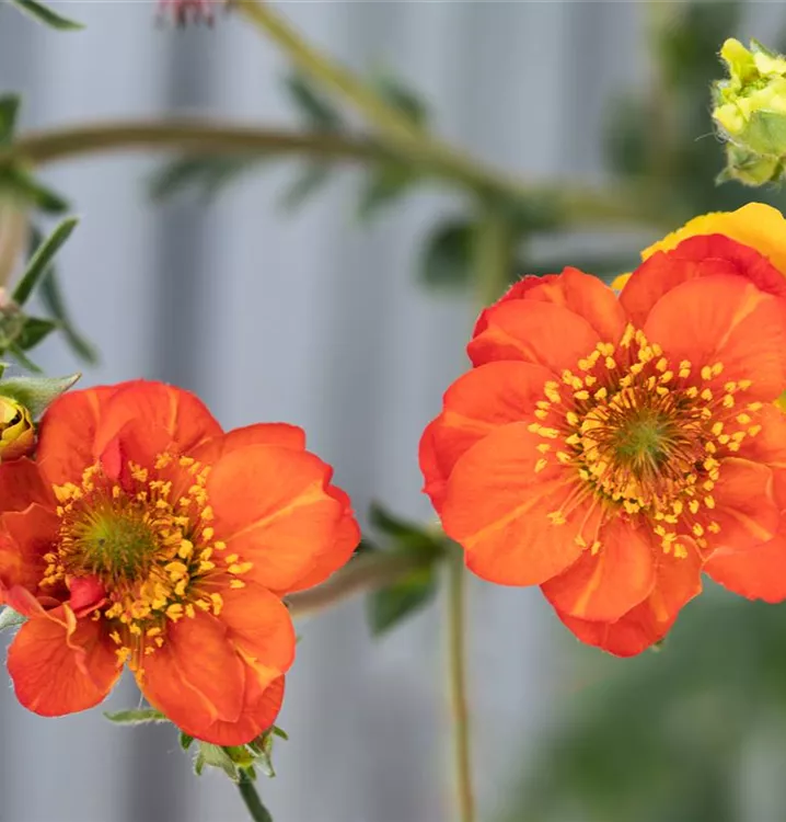Geum x heldreichii 'Sigiswang' bildet orange-rote Blüten ab Mai.