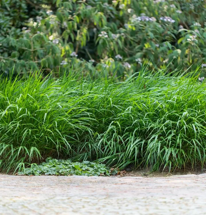 Japan-Waldgras breitet sich langsam über kurze Rhizome aus und kann so als Bodendecker verwendet werden. Eingewachsene Exemplare überstehen auch kurze Trockenphasen.