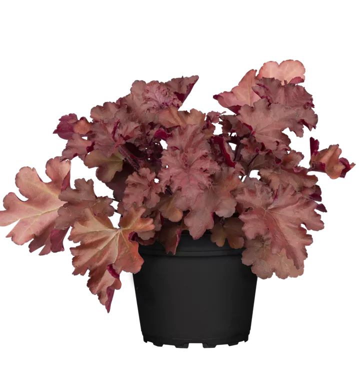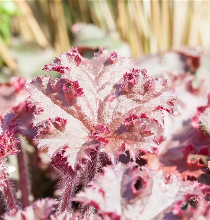 Das Garten-Silberglöckchen 'Mocha' (Heuchera micrantha) ist eine buschige, rhizombildende, rosettenartige wintergrüne Staude mit dekorativen, herzförmigen, dunkelroten Blättern. An einem sonnigen bis halbschattigen Standort mit durchlässigem, nährstoffreichem Boden erreicht es gewöhnlich eine Höhe von ca. 50 cm und wird ca. 30 cm breit. Das Garten-Silberglöckchen 'Mocha' ist gut frostverträglich.