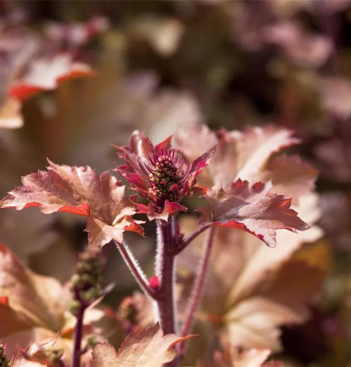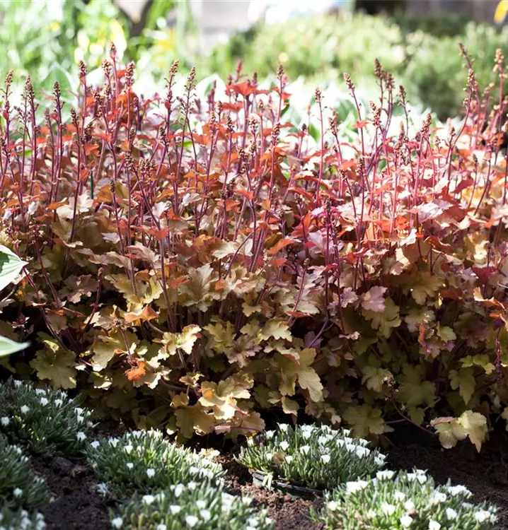 Das Purpurglöckchen (Heuchera) ist eine wintergrüne Staude mit dekorativen, kupferbraunen Blättern.