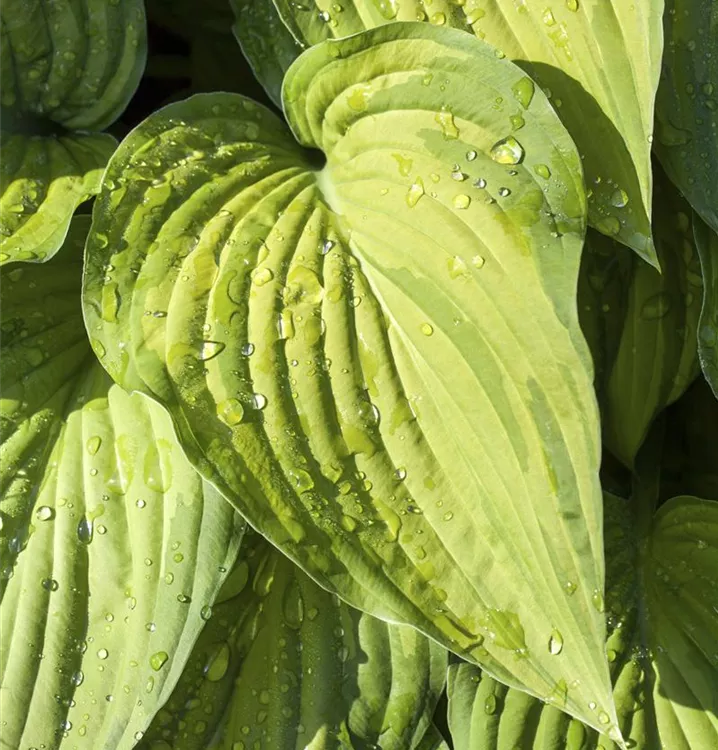 Hoher Blattschmuckwert. Die sommergrünen Blätter der Glocken-Funkie sind dunkelgrün, herzförmig, grundständig, ganzrandig.