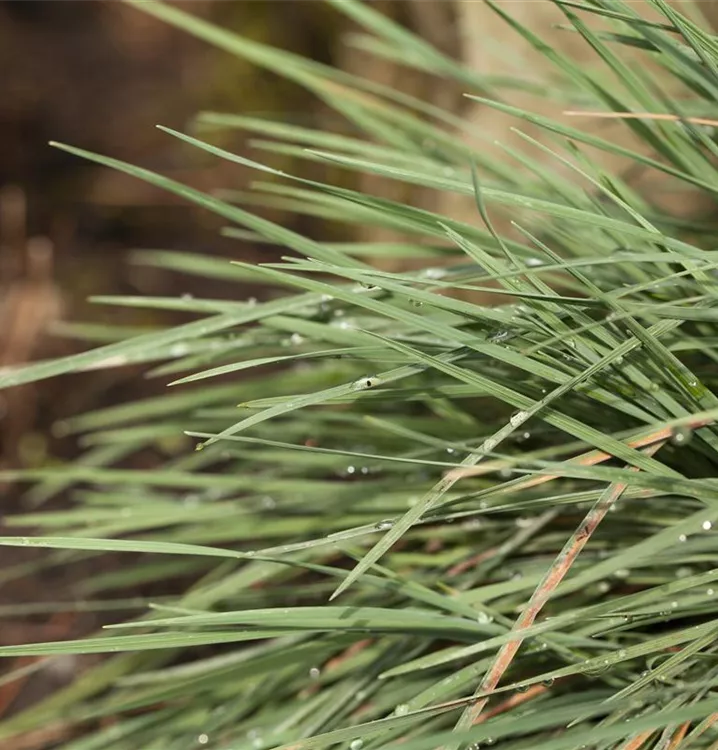 Die wintergrünen Blätter des Blaugrauen Schillergrases sind blau-grün, lanzettlich.
