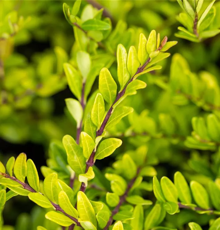 Die Böschungsmyrte (Lonicera pileata) ist ein ausladender, breiter Kleinstrauch mit dekorativen, purpurvioletten, runden Früchten. Die röhrenförmigen Blüten erscheinen je nach Sorte in verschiedenen Farben.