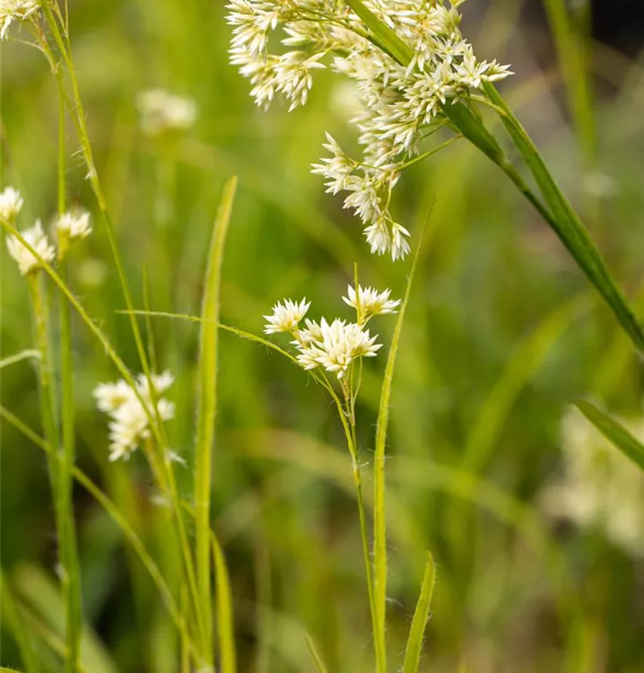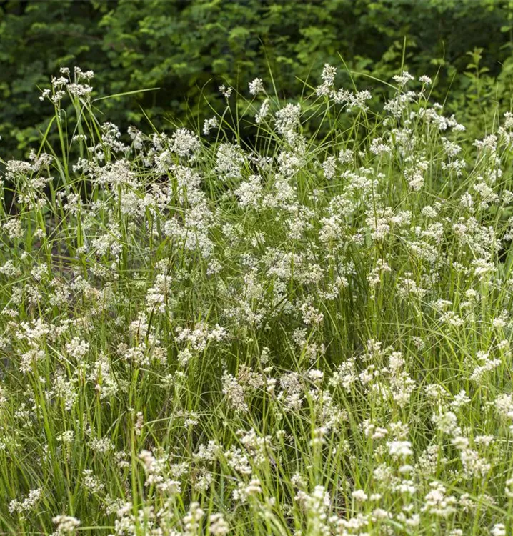 Die Schnee-Hainsimse (Luzula nivea) ist mit ihrer mittelgrünen Blattfärbung ein dekoratives Gestaltungselement im Garten, welches sich an einem halbschattigen Standort mit einem möglichst durchlässigen, humosen Boden am wohlsten fühlt. Die weißen Blütenwedel schmücken die buschig, breit und dicht wachsende Pflanze ab Sommer. Bei günstigen Bedingungen erreicht dieses winterharte Gras eine Höhe von ca. 20 cm und wird bis zu 20 cm breit.