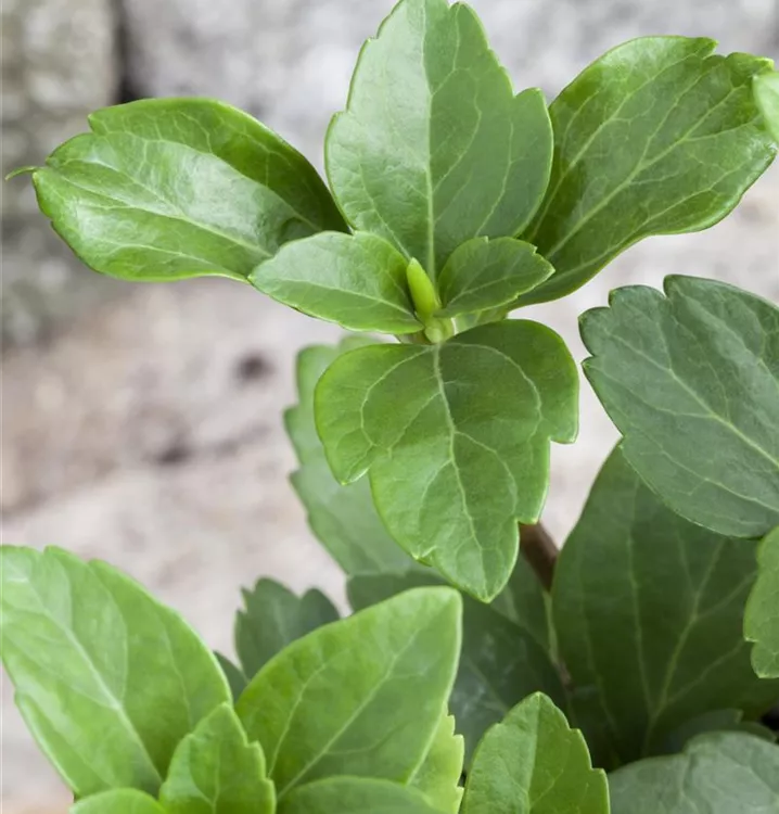 Diese immergrüne Staude bezaubert insbesondere mit einem kontrastreichen Schauspiel aus Blatt- und Blütenschmuck. Sie ist damit eine optimale Alternative zu anderen Schattenpflanzen wie Efeu oder Farne. Pachysandra terminalis gedeiht auf fast allen Böden hervorragend. Mit Hilfe seiner unterirdischen Ausläufer breitet es sich ziemlich schnell aus. Es ist besonders gut zur Unterpflanzung von Gehölzen geeignet, da es auch den Wurzeldruck von größeren Bäumen mühelos ertragen kann.