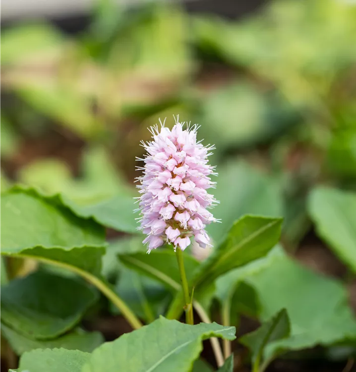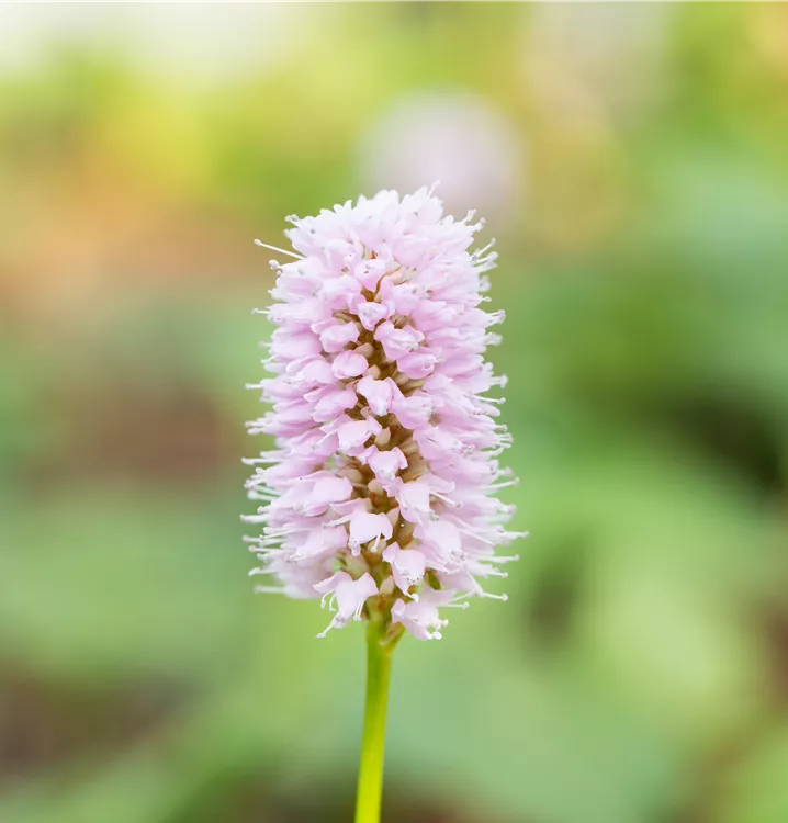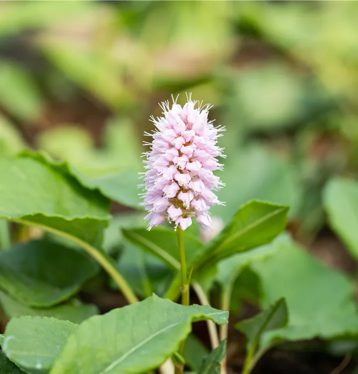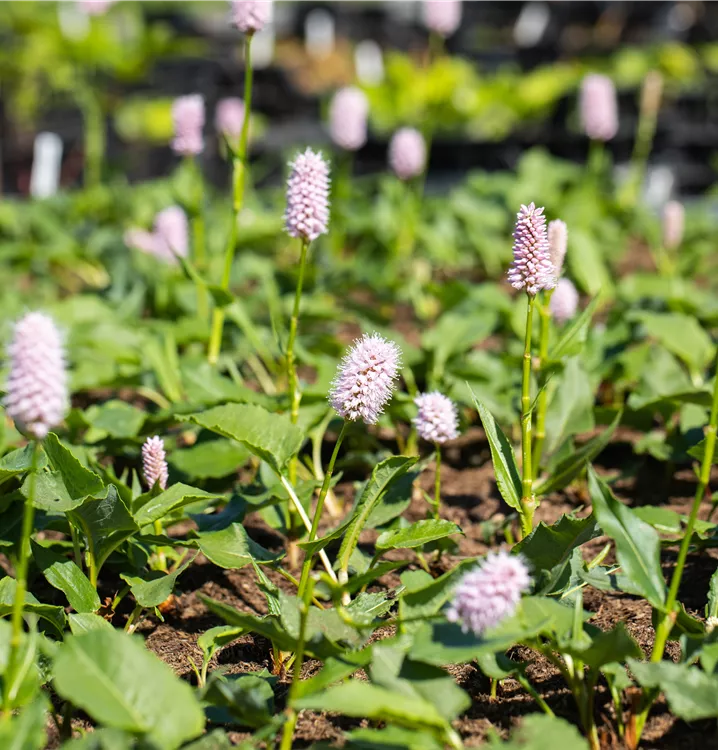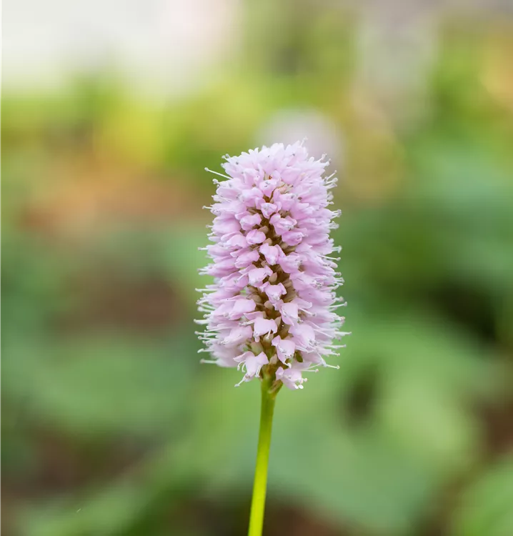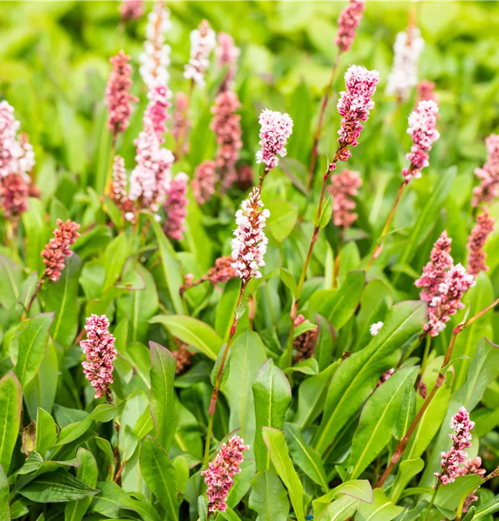 Bistorta affinis 'Superbum' bildet in Ähren angeordnete, rosafarbene Blüten ab Juli.