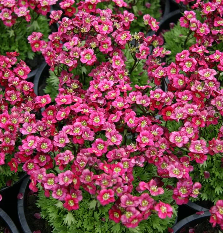 Peter Pan' ist eine zauberhaft Steinbrech-Sorte, die sich von März bis April mit einer Vielzahl an kleinen, karminroten Blüten schmückt. Ihr kompakter, polsterartiger Wuchs macht diese ausdauernde und pflegeleichte Staude perfekt für Mauerfugen, aber auch in der Grabbepflanzung findet sie Verwendung. Verblühte Blütenstände sollten von Zeit zu Zeit zurückgeschnitten werden. Ansonsten bevorzugt sie einen frischen, durchlässigen Boden, sowie einen halbschattigen bis sonnigen Standort.