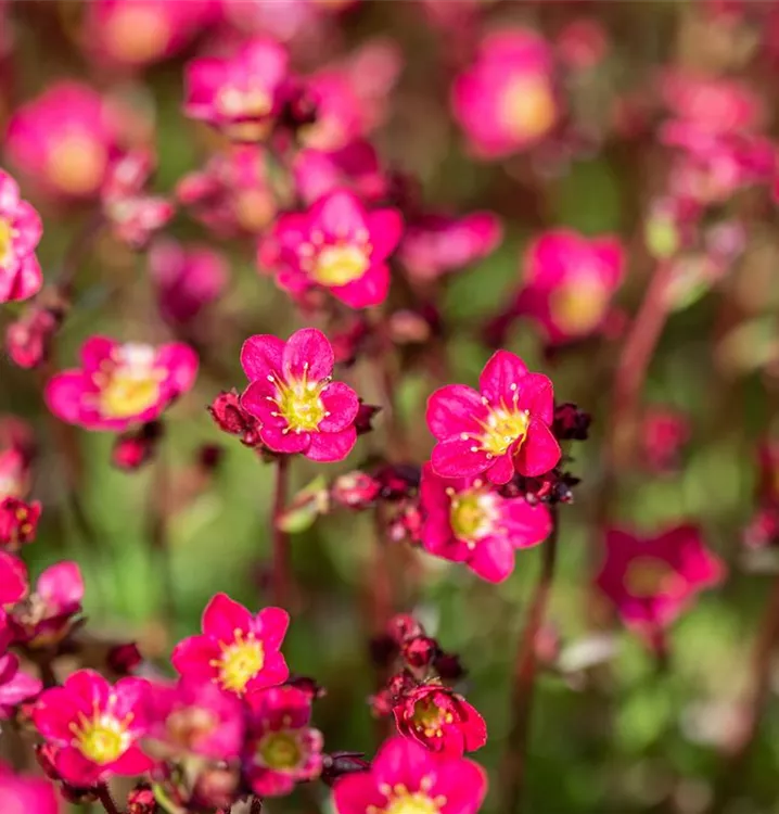 Je nach Sorte, bildet Saxifraga 'Pixie' Blüten in verschiedenen Farben zwischen April und Mai.
