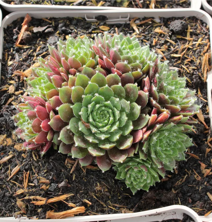 Sempervivum braucht nicht viel, die Wildformen eigentlich nicht einmal Erde. So genügsam sind sie bestens geeignet für pflegeextensive Dachbegrünungen oder um sie in Mauerfugen zu setzen. Und natürlich kann man sie auch in Töpfe oder Schalen pflanzen.