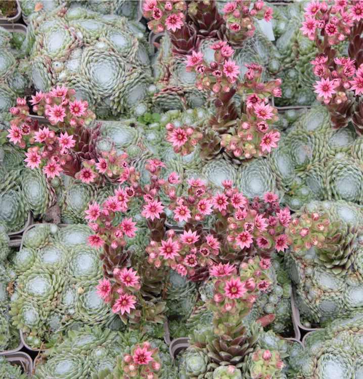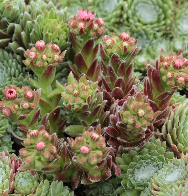 Nach der Blüte stirbt die jeweilige Rosette ab. Sempervivum ist monokarp, das heißt: sie blüht nur ein einziges Mal. Zuvor hat sie jedoch reichlich Tochterrosetten gebildet, die sich ablösen und die Pflanze erhalten.