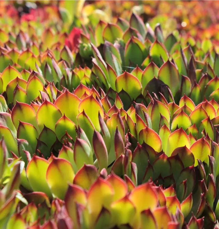 Sempervivum ist unter vielen Namen bekannt: Hauswurz, Dachwurz, Donnerwurz, Felsenwurz oder auch Lebendpflanze – allesamt Hinweise auf ihre lange Gartenkultur und erstaunliche Robustheit. Der botanische Name leitet sich von den lateinischen Wörtern semper (immer) und vivus (lebend) ab. In der mittelalterlichen Folklore galt Sempervivum als geeignetes Mittel gegen Blitzeinschlag, Hexenwerk und Hautkrankheiten.