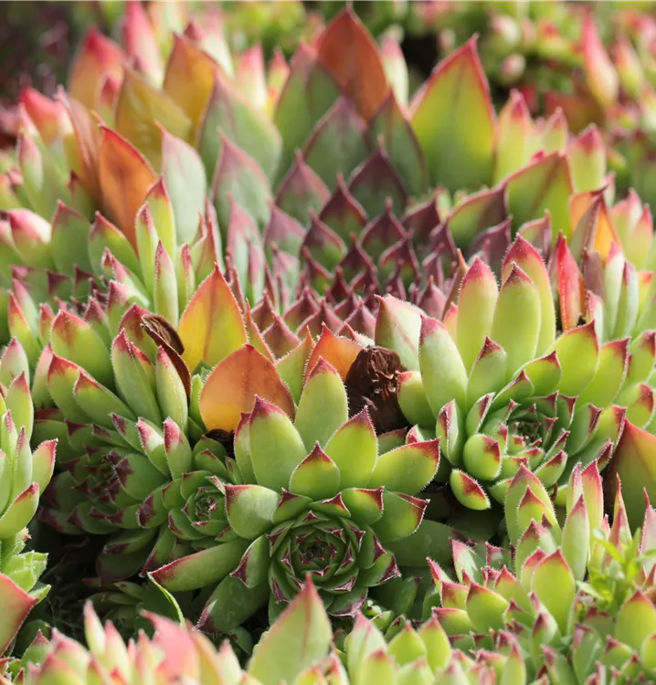 Sempervivum braucht nicht viel, die Wildformen eigentlich nicht einmal Erde. So genügsam sind sie bestens geeignet für pflegeextensive Dachbegrünungen oder um sie in Mauerfugen zu setzen. Und natürlich kann man sie auch in Töpfe oder Schalen pflanzen.