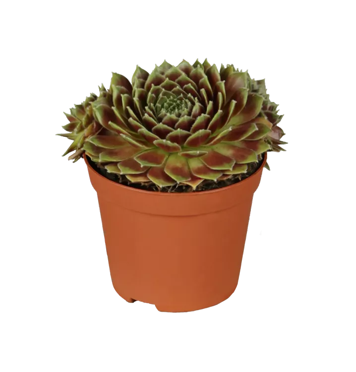 Die Hauswurz (Sempervivum) ist eine polsterbildende, rosettenartige immergrüne Staude, die, je nach Sorte. An einem sonnigen Standort mit durchlässigem Boden erreicht sie gewöhnlich eine Höhe von ca. 15 cm und wird ca. 20 cm breit. Die Hauswurz ist an geschützten Standorten gut frostverträglich.