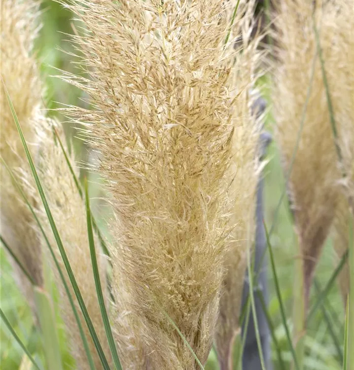 Das Garten-Pampasgras 'Tiny Pampa'® (Cortaderia selloana) ist mit seiner grau-grünen Blattfärbung ein dekoratives Gestaltungselement im Garten, welches sich an einem sonnigen Standort mit einem möglichst durchlässigen, humosen, nährstoffreichen Boden am wohlsten fühlt. Die cremeweißen Blütenwedel schmücken die kompakt wachsende Pflanze ab Herbst. Bei günstigen Bedingungen erreicht dieses winterharte Gras eine Höhe von ca. 60 cm und wird bis zu 60 cm breit.