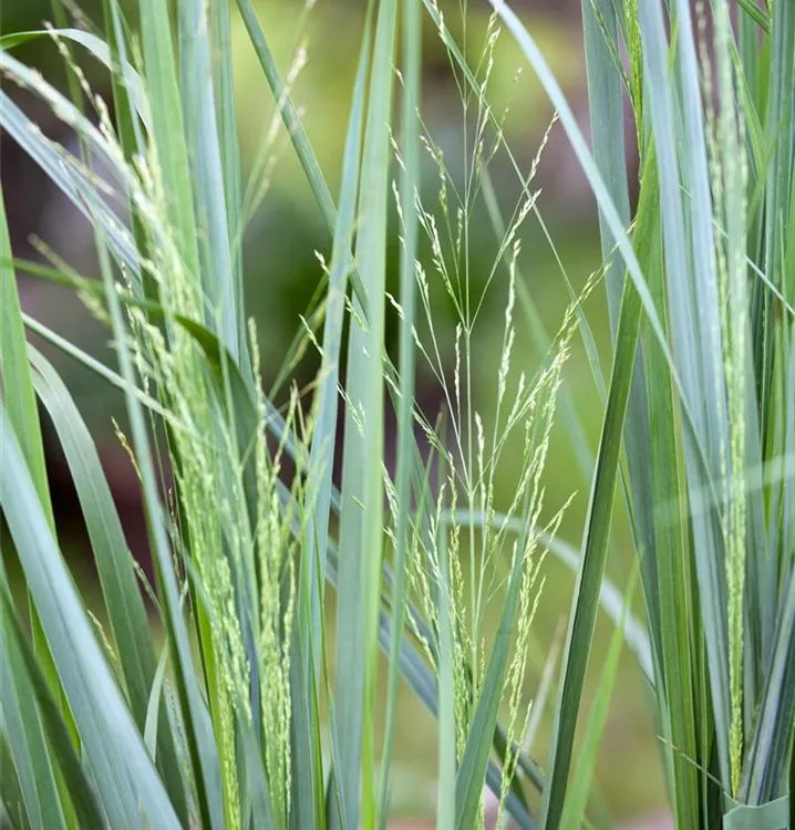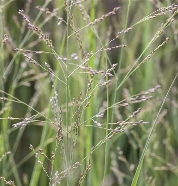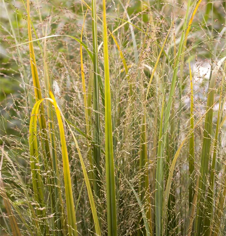 Die grünen Blüten der Garten-Ruten-Hirse 'Northwind' erscheinen in Rispen von Juli bis September.
