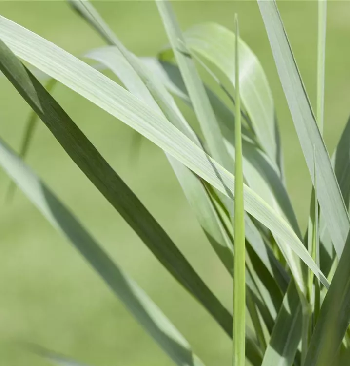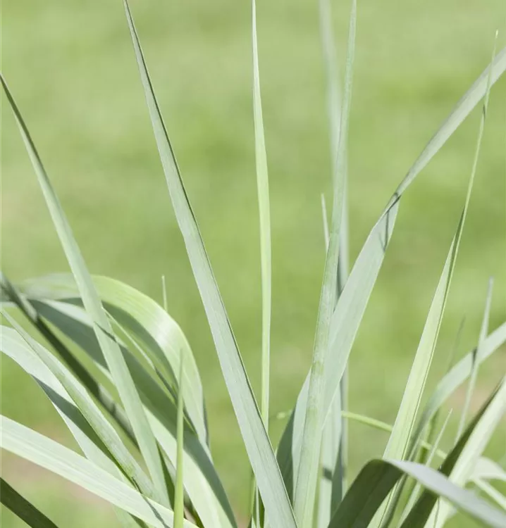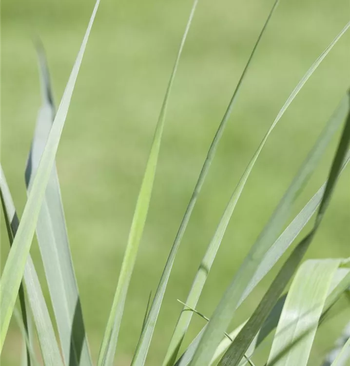 Die sommergrünen Blätter der Garten-Ruten-Hirse 'Prairie Sky' sind blau-grau, lineal.