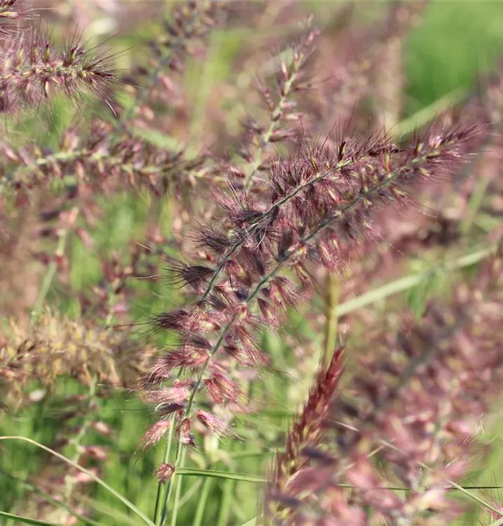 Das Orient-Lampenputzergras 'Karley Rose' (Pennisetum orientale) ist ein dekoratives Gestaltungselement im Garten, welches sich an einem sonnigen Standort mit einem möglichst durchlässigen Boden am wohlsten fühlt. Die rosafarbenen Blütenwedel schmücken die aufrecht wachsende Pflanze ab Sommer. Bei günstigen Bedingungen erreicht dieses winterharte Gras eine Höhe von ca. 1,2 m und wird bis zu 50 cm breit.