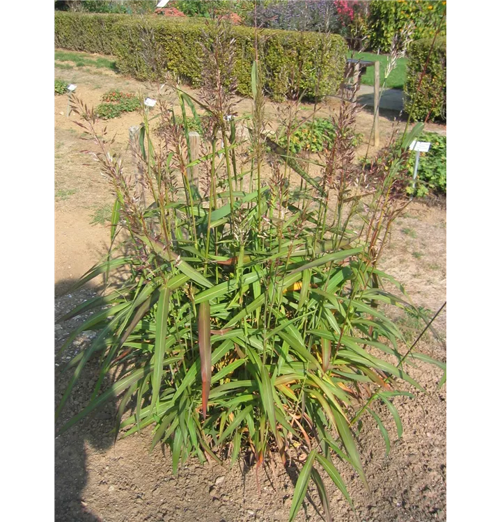 Das Zotten-Rauhgras 'West Lake' (Spodiopogon sibiricus) ist mit seiner roten Blattfärbung ein dekoratives Gestaltungselement im Garten, welches sich an einem sonnigen Standort mit einem möglichst durchlässigen, humosen Boden am wohlsten fühlt. Die purpurvioletten Blütenwedel schmücken die aufrecht und horstbildend wachsende Pflanze ab Sommer. Bei günstigen Bedingungen erreicht dieses winterharte Gras eine Höhe von ca. 1,5 m und wird bis zu 80 cm breit.