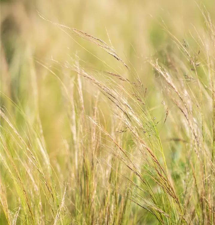 Die silbrigen Blüten des Haar-Federgras erscheinen in Rispen von Juli bis August.