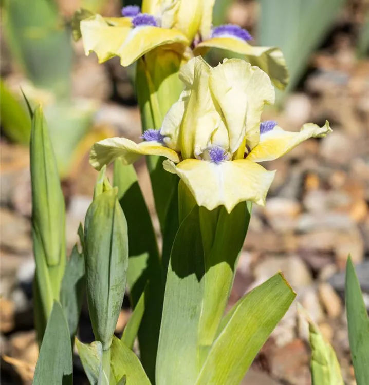 Bart-Iris lieben die Sonne – je mehr, desto besser. Ideal sind vollsonnige, warme Standorte mit gut durchlässigem Boden. Der darf gern nährstoffreich und auch lehmig sein, sollte aber nicht zu sauer und auf keinen Fall staunass sein. Ein leicht alkalischer pH-Wert ist optimal. Staunässe führt zu Rhizomfäule.