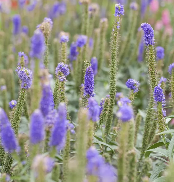 Veronica longifolia, blau bildet rachenförmige, in Trauben angeordnete, blaue Blüten ab Juni.