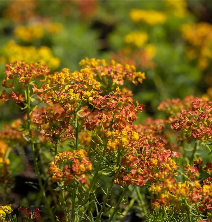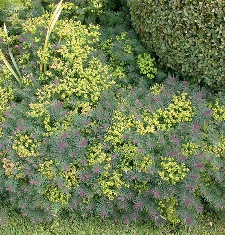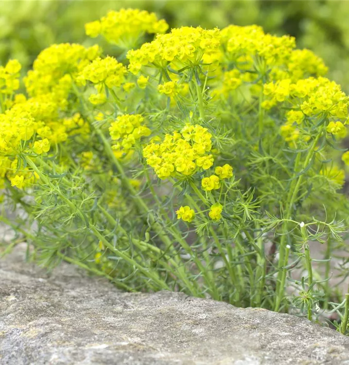 Die Zypressen-Wolfsmilch (Euphorbia cyparissias) ist eine buschige, ausläuferbildende Staude, die von Mai bis Juni hellgelbe Blüten mit einem starken Duft bildet. An einem sonnigen bis halbschattigen Standort mit durchlässigem, nährstoffreichem Boden erreicht sie gewöhnlich eine Höhe von ca. 25 cm und wird ca. 25 cm breit. Die Zypressen-Wolfsmilch ist gut frostverträglich.