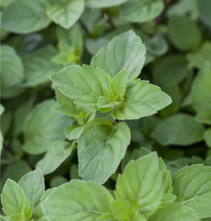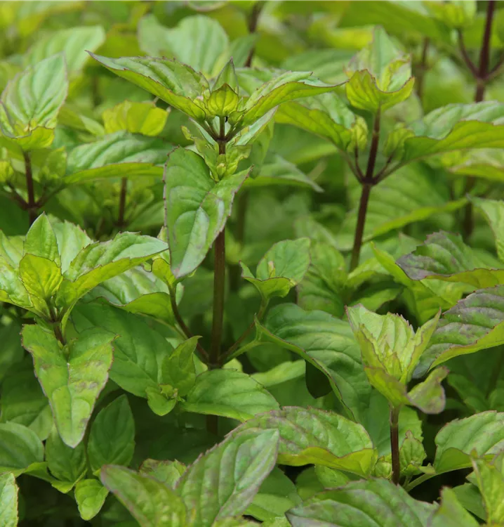 Die Lemon-Minze (Mentha x piperita var. citrata 'Lemon') hat eine leichte Zitrusnote und wird etwa 40-50 cm hoch.
