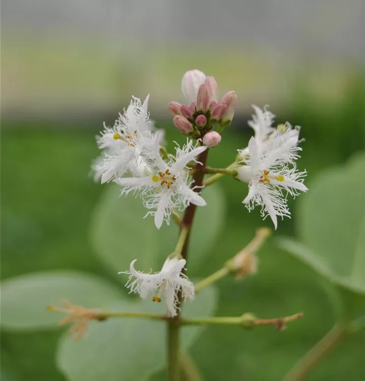 Der Fieberklee (Menyanthes trifoliata) ist mit seinen mittelgrünen Blättern eine ausgesprochen dekorative Wasserpflanze, die für solche Einsatzbereiche wie Teichrand, Bachlauf, Teich und Bienenweide besonders gut geeignet ist. Weiße Blüten erscheinen von Mai bis Juni. Er bevorzugt humosen, kalkfreien, lehmigen, feuchten bis nassen Boden in sonniger bis halbschattiger Lage. Der Fieberklee ist gut frostverträglich. Die buschige, breite Staude erreicht gewöhnlich eine Höhe von ca. 30 cm.
